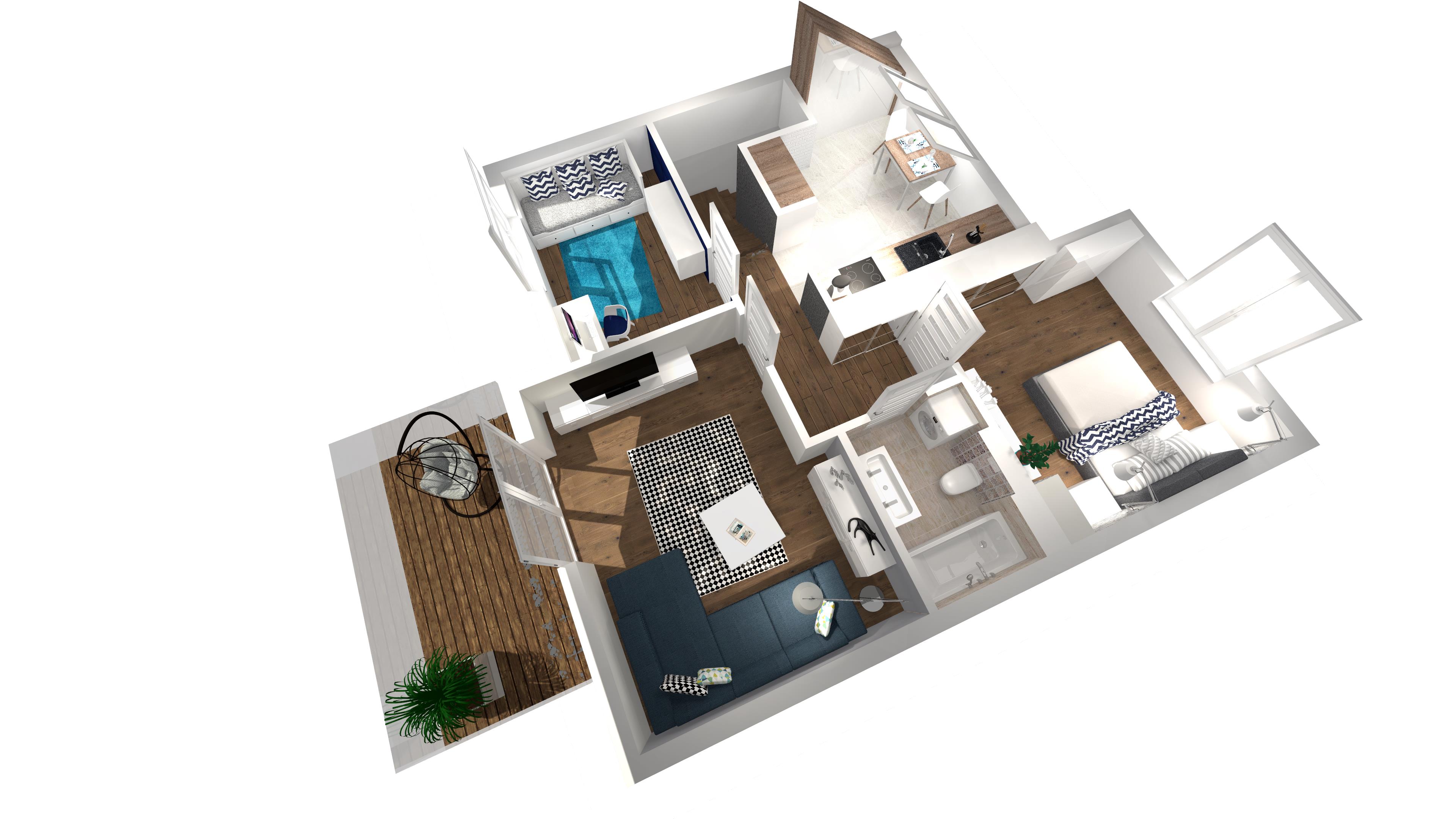 Wizualizacje rzutu i wnętrz - mieszkanie na piętrze