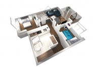 Wizualizacje rzutu i wnętrz - mieszkanie na parterze